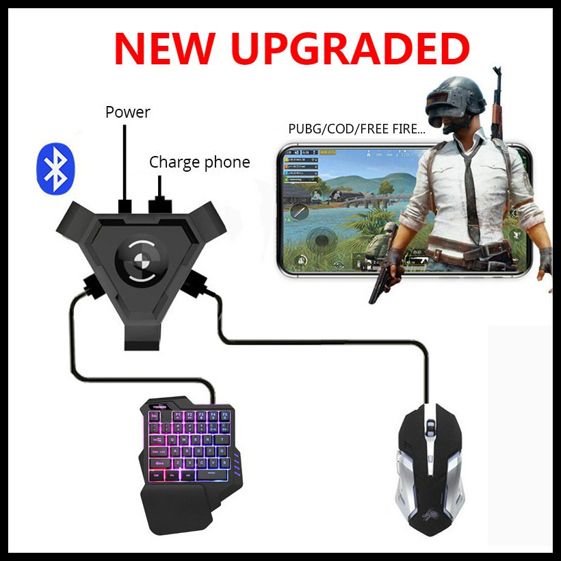 【enjoy games】easy to connect to your phones via usb, allows you to use your own keyboard and mouse to control the shooting or battle mobile games, such as for pubg/ fortnite/ free fire/ mobile legend and more fps games.